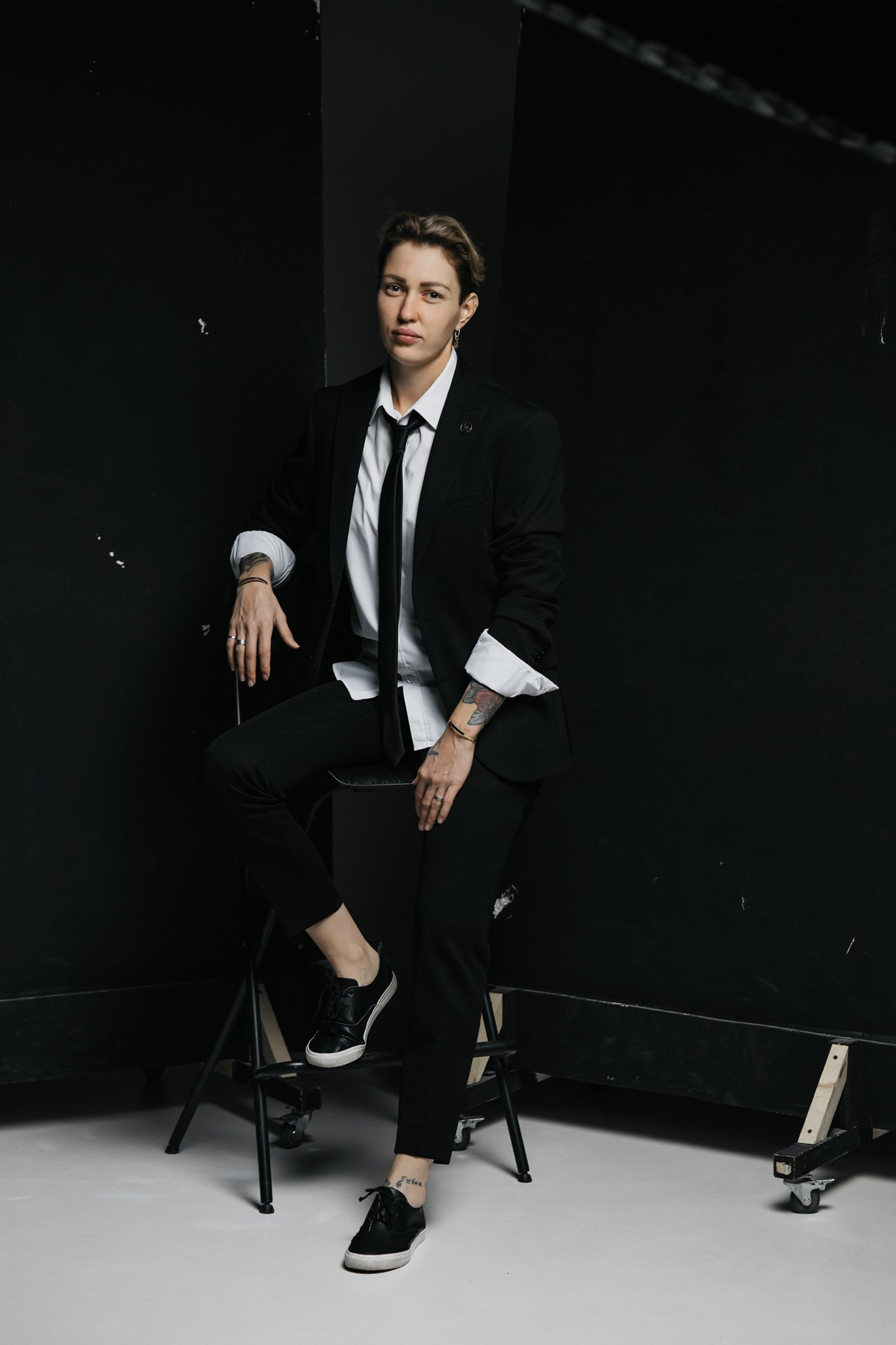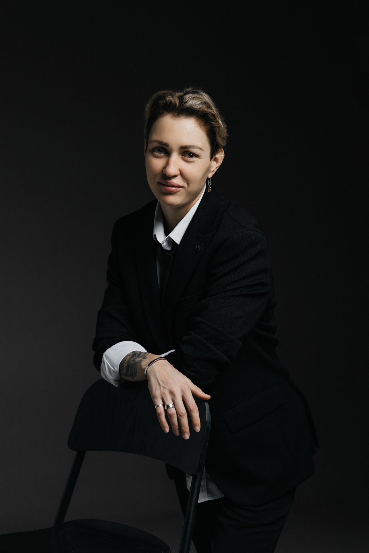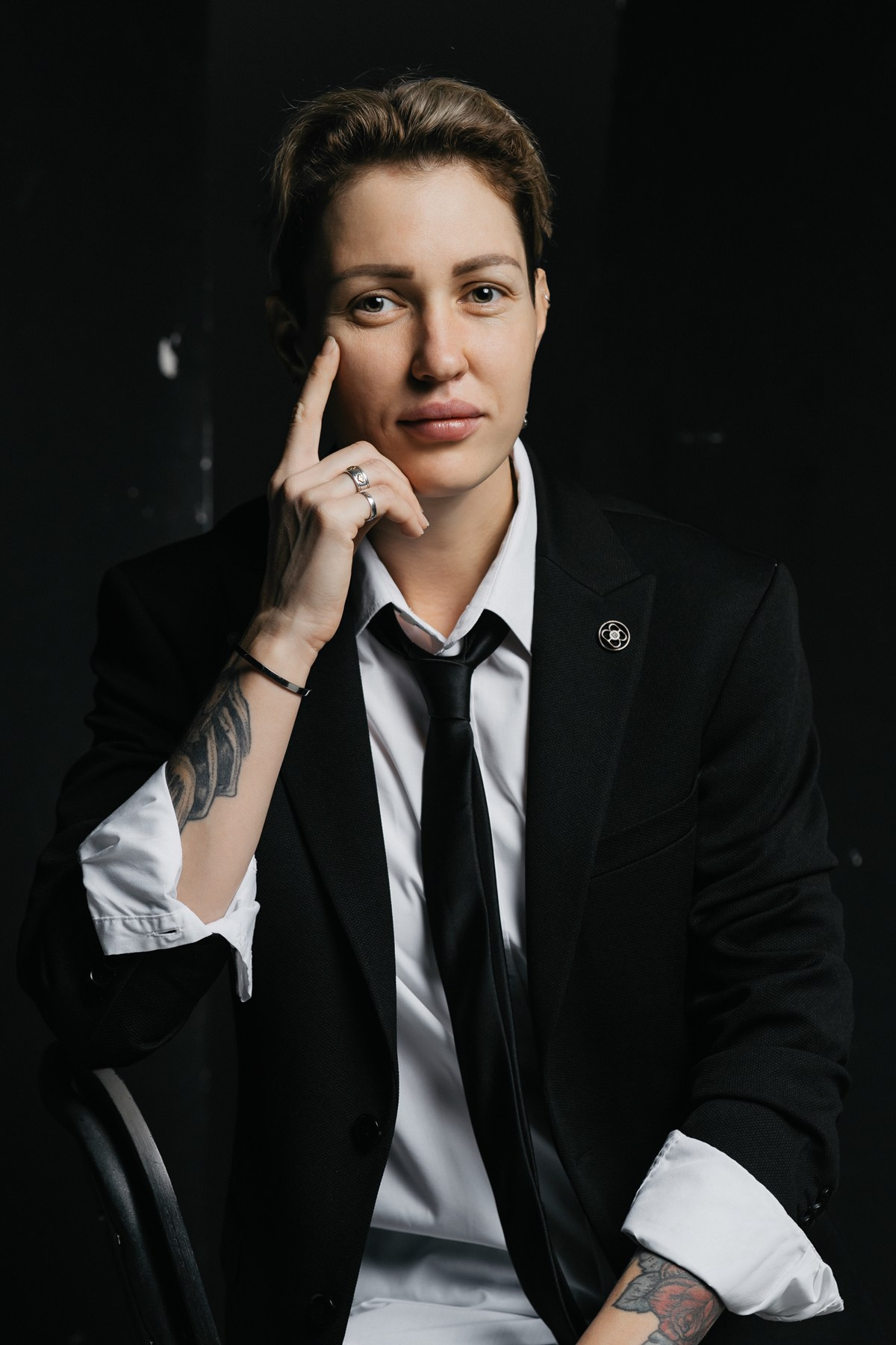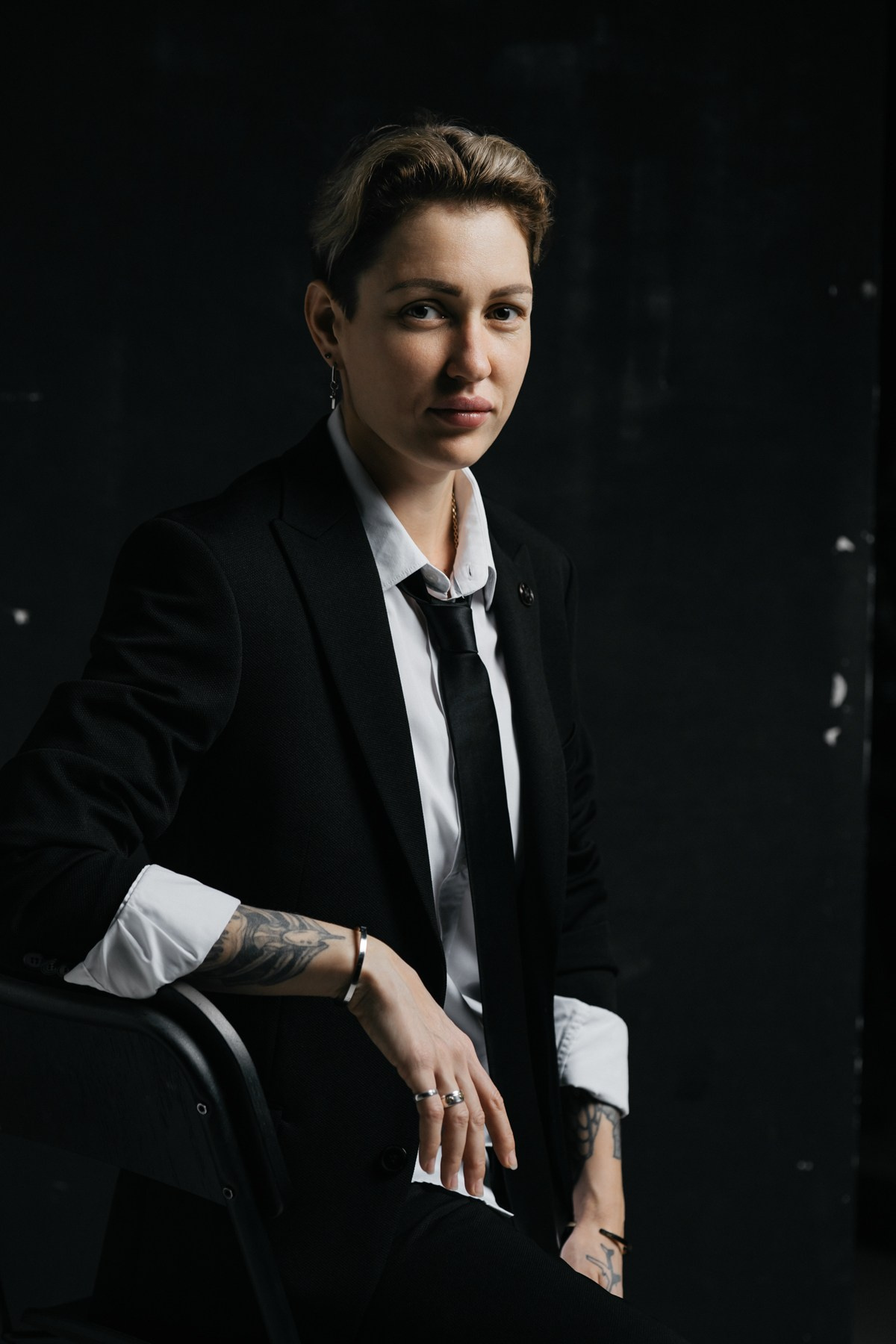 Перед нами не просто девушка, а дерзкая реинкарнация Джона Константина, с глазами, которые видели слишком много тьмы. Брутальность этого образа, снятого в низком ключе, создает звенящий контраст с изначальной нежностью, превращая её в охотника за тенями с безупречным деловым хватом. Каждый кадр — это напряженный бизнес-портрет, где сделки заключаются не на Уолл-Стрит, а на границе между мирами. Эта съемка — чистый адреналин: идеальная симметрия между ангельским лицом и демонической решимостью.